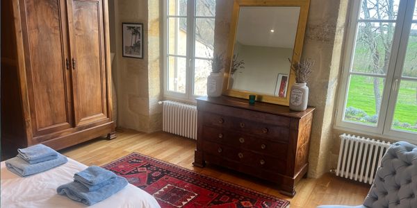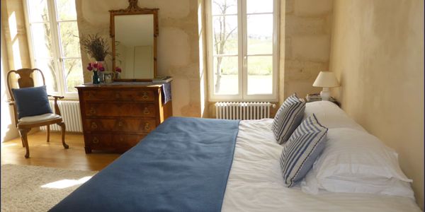 A very spacious room with an emperor bed and en suite shower room. It shares the same far-reaching views across the vines and surrounding countryside, offering light and tranquillity throughout the day.